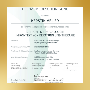 ✔ Rückrufe außerhalb der Sprechzeiten sind derzeit nicht möglich. Bitte kontaktieren Sie mich per E-Mail.